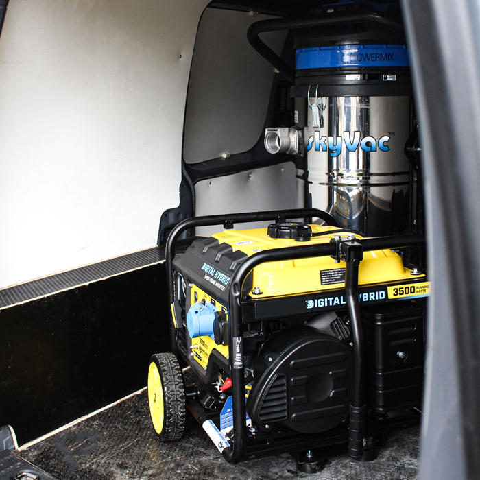 The ideal generator for your gutter vacuum! Quieter, smaller, and lighter than traditional generators, the skyVac 3600W Generator is the perfect partner for your vacuum. Compatible with the skyVac Mighty Atom, Atom Sonic, Commercial Plus and Industrial 85.